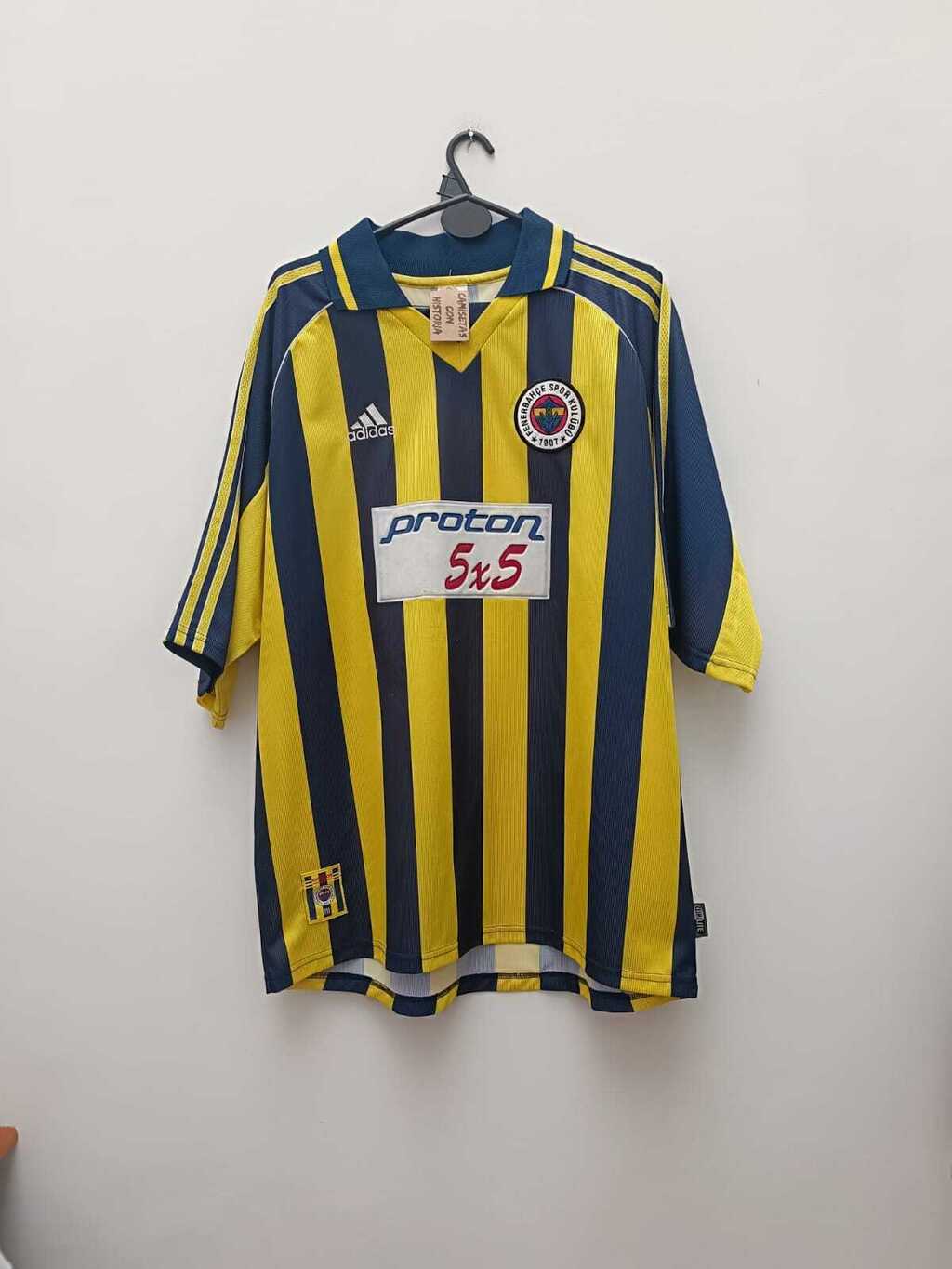 Las camisetas que aquí comercializamos son productos de coleccion por el cual su estado de conservación se mantiene sin alterar la tela o sus estampados, por eso en su mayoría publicamos en los avisos si tienen algún detalle ya que no se someten a lavados para preservar su estado de conservación. Camisetas Con Historia NO RECOMIENDA NI SE RESPONSABILIZA ANTE UN DESPERFECTO EN LA PRENDA POR LAVADO, ya que los materiales de estampados en sponsors y dorsales (numeros y apellido del jugador) pueden sufrir alteraciones debido a los fuertes componentes que se usan hoy en los lavados convencionales. En el caso de usar la prenda y tener que lavarla se recomienda hacerlo a mano en las zonas de roce (axilas, cuello) sin abarcar las zonas de estampados. Para + dudas sobre los cuidados contactanos!